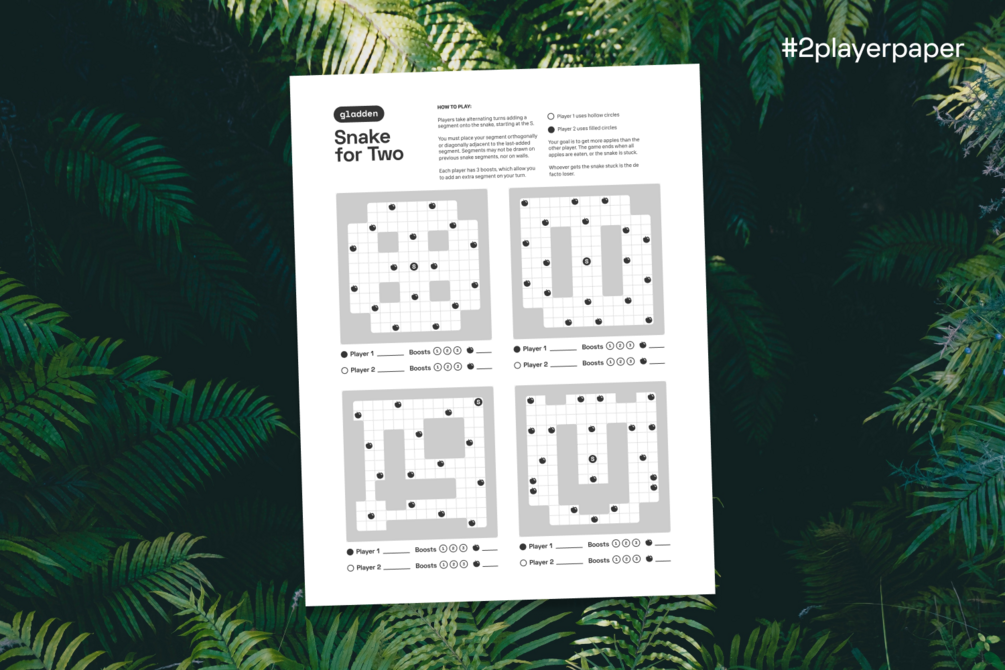What if you took the classic Snake game, and put two people in control of the snake? And made it turn-based? And played it with paper and pen?